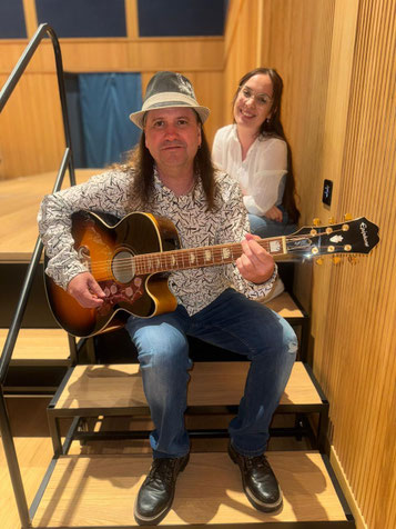 Roger begleitet sie mit stilvollem Gitarrenspiel und einem sicheren Gespür für Dynamik, Timing und Klang. Seine ruhige Präsenz und musikalische Erfahrung geben dem Duo eine solide Basis.